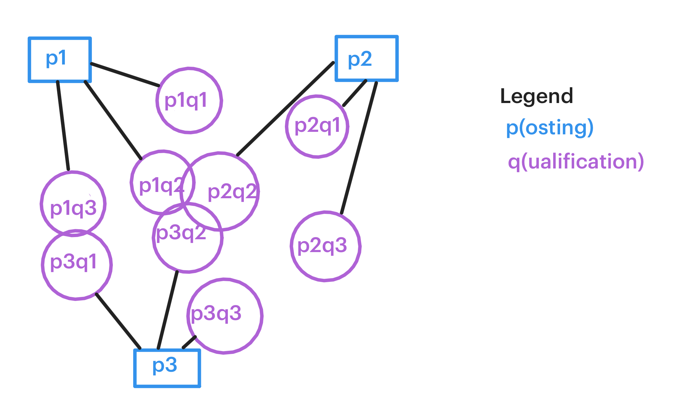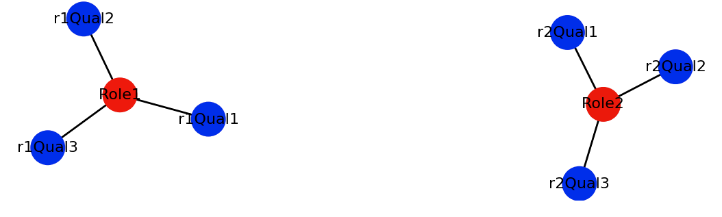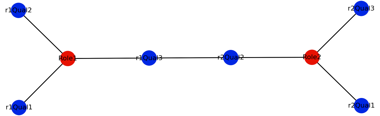 So, I represented roles and qualifications by nodes, and the connection by edges. So a each role would have a few qualifications connected to it: