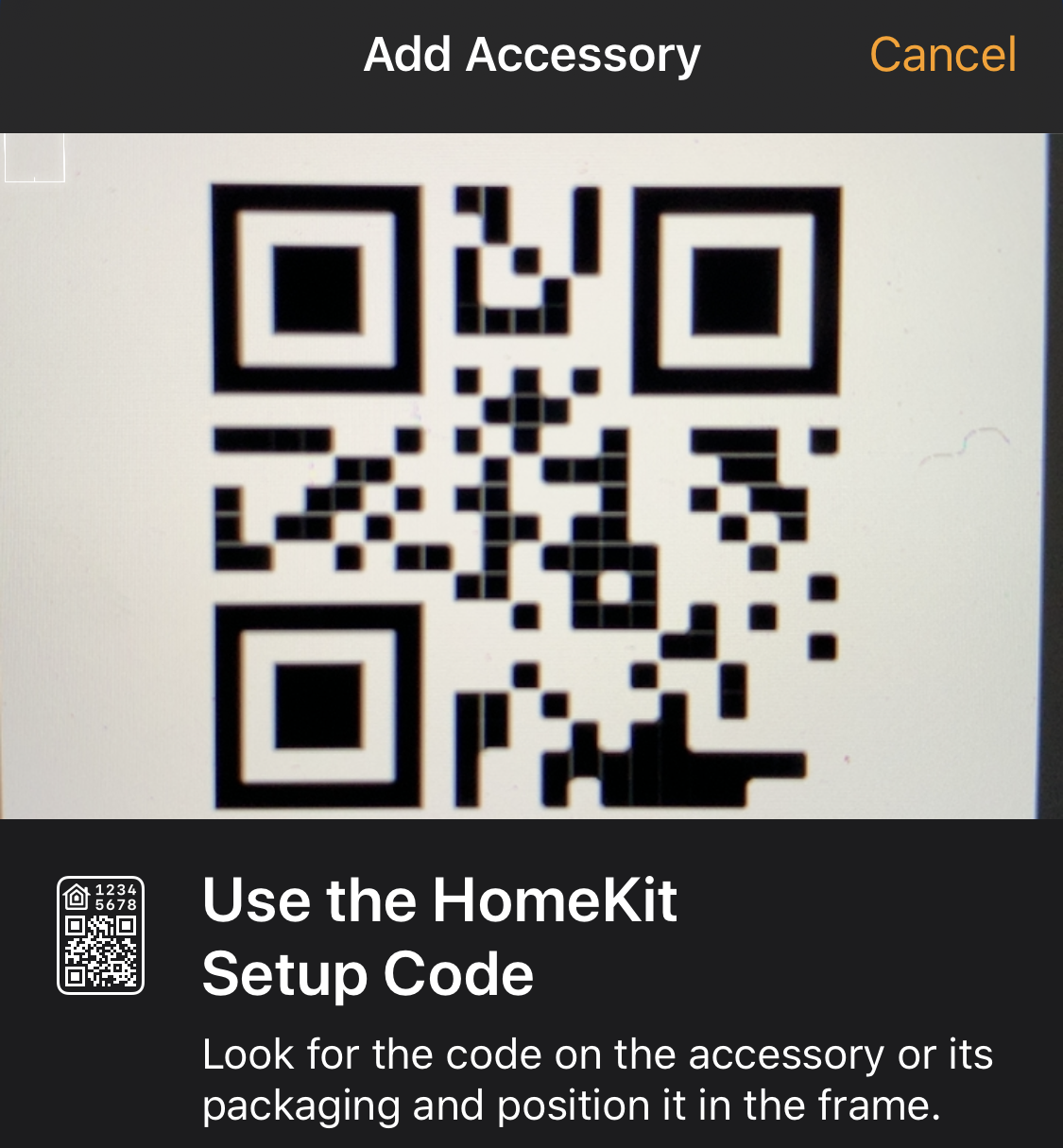 Homebridge now needs to be added to the Home app on iOS. Go to Add Accessory, then scan the QR code that shows up on the Pi's screen.